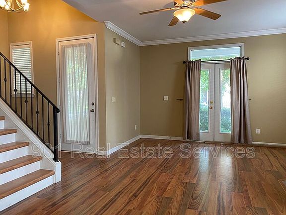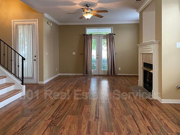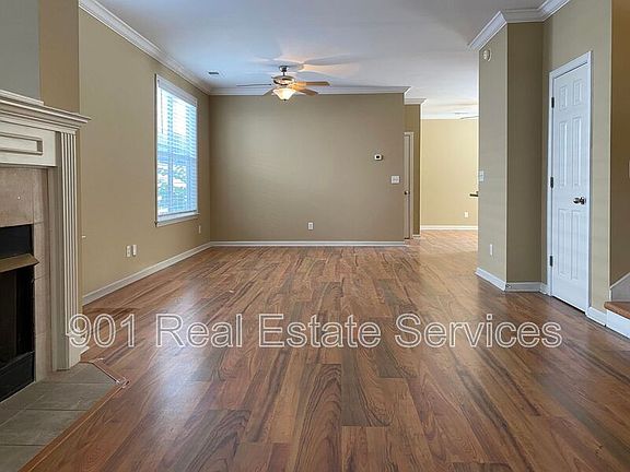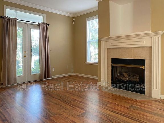 This 3 bedroom 2.5 bathroom located on Mud Island has brand new flooring upstairs! The living room features a gas fireplace and access to the front patio, as well as room for a formal dining area. The kitchen has black and stainless steel appliances and a breakfast area. A half bath and laundry room with washer/dryer is also located downstairs. Each bedroom is located upstairs and has new wood laminate flooring. The primary bedroom features vaulted ceilings, a beautiful chandelier, and opens to a private balcony. The en suite bathroom has a tub, glassed-in shower, and double sink vanity. The additional bedrooms shared a full bath with shower/tub combo. Rear loading 2-car garage attached. Pet friendly (only cats and small dogs, 2 pets maximum). This beautiful home is located on Mud Island, close to Cordelia's Market, Paulette's, Greenbelt Park, and the Mississippi River. Just across the bridge, you'll find all the fun of downtown. Professionally managed by 901 Real Estate Services *Additional one-time fees may apply. Please ask the agent for more details. Some photos virtually staged.* **Avoid scams: We do not post our properties on Facebook Marketplace or Craigslist and will never ask you to pay anything through CashApp, Zelle, or Venmo.** Amenities: parking - 2 car garage, quaint neighborhood, private balcony, front porch, beautiful hardwood flooring, fireplace - gas, high ceilings, ceiling fan(s), black & stainless steel appliances, dressing closet(s), large shower, large soaking tub