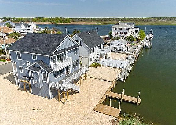 LACEY TOWNSHIP!! Upgraded Waterfront 4 Bed, 2.5 Bath Open concept floor plan with 9ft ceilings. Custom Kitchen & island with a magnificent upgraded 42'' cabinets, quartz counter tops, and stainless steel appliance package. Hardwood floors throughout, upgraded lighting throughout house large open Living/Dining room with Gas Fireplace, Large windows and Sliding door which leads to a top of the line Wolf composite deck overlooking the water. Master Bedroom with private Balcony to watch the beautiful sunsets over the water, Walk In Closet & Master Bath with rain shower head, just seconds from the open water & minutes to the bay in a Desirable Waterfront Community, New vinyl bulkhead, new dock, plus a 1 car garage and bonus room with double wide doors to gain easy