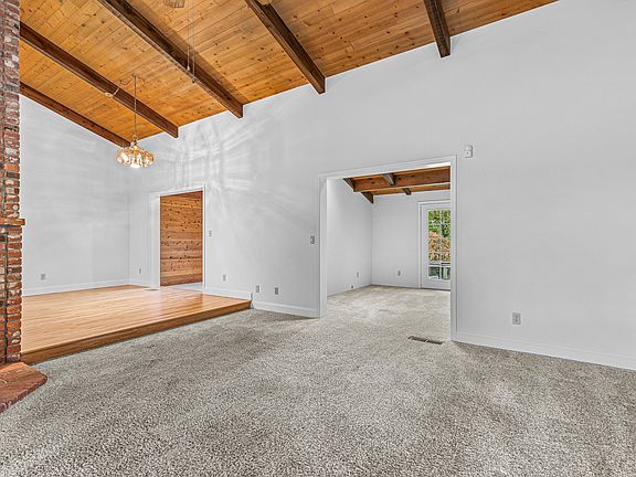 This is a great value in a high demand area. This inviting home sets on a large .26 acre corner lot. A hardwood entry enters to a large vaulted great room with exposed wood beams. The hardwood floors in the dining room, entry and small hall have just been refinished and look like new and the interior has just been painted. The roomy primary bedroom has new carpet and the bathroom area has new vinyl. French doors take you out to a deck off the primary bedroom. You will find an abundance of kitchen cabinets off the dining room complete with a double oven range, pantry, microwave and spacious refrigerator. Other features include a utility room, sun room with skylights, office space, 3 car garage, RV parking and a 12X12 storage building. The HVAC system was replaced three years ago. It is an outstanding value and will sell quickly so see it today.