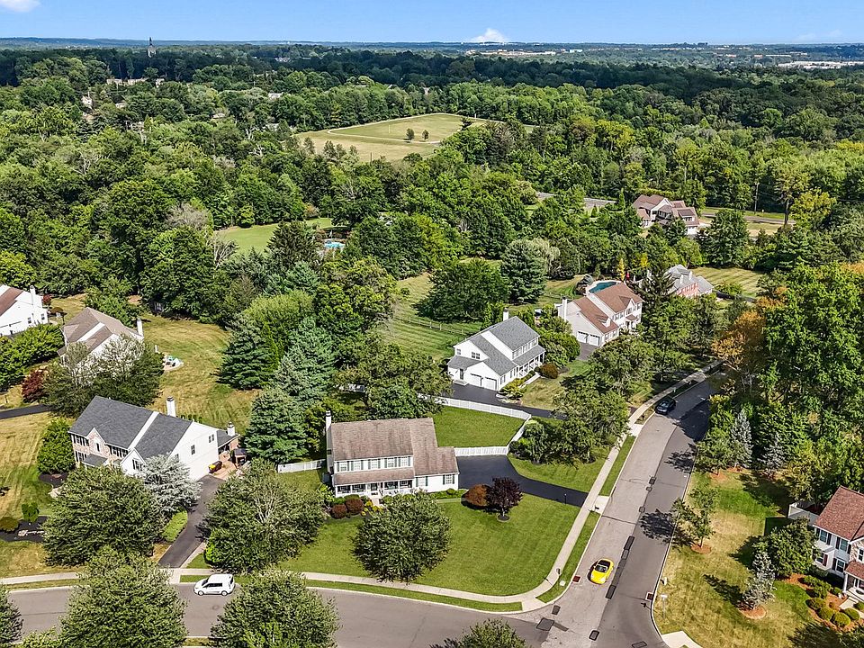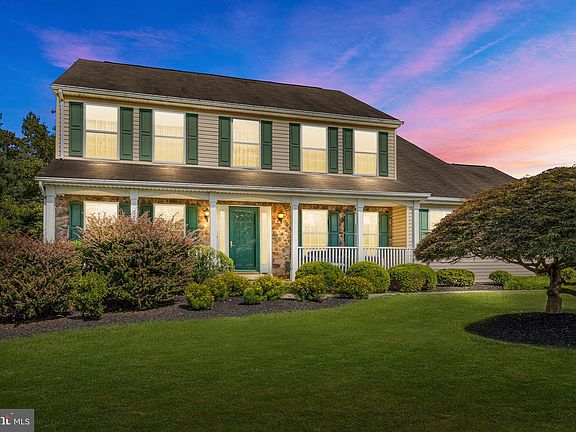 Welcome to 1211 Lady Violet, a beautifully maintained 4-bedroom, 2.5-bath Colonial nestled in the sought-after Squires Knoll community. Set on a picturesque half-acre—one of the most desirable lots in the neighborhood—this home blends timeless Colonial charm with inviting farmhouse accents. A welcoming front porch sets the stage for the warm, open foyer with gleaming hardwood floors. To one side, a sun-filled formal living room offers a relaxing retreat; to the other, a spacious dining room perfect for hosting gatherings. The dining area flows seamlessly into the well-appointed kitchen, complete with a center island, butler’s pantry, and ample cabinetry. Just beyond, the comfortable family room features a cozy gas fireplace, ideal for relaxing evenings. A mudroom with main-level laundry, a stylish half bath, and direct access to the two-car garage complete the first floor. Upstairs, the expansive primary suite boasts a vaulted ceiling, two generous closets, and a luxurious en suite with dual sinks, a soaking tub, and a walk-in shower. A versatile sitting area provides the perfect space for a home office or reading nook. Three additional bedrooms—each with a ceiling fan—share a full hall bath with double sinks, a tub/shower, and a linen closet. The unfinished basement offers abundant storage and includes a water softener. Outdoors, enjoy a private fenced backyard with PVC picket fencing, a large stone patio, and beautifully landscaped surroundings—perfect for entertaining or unwinding. Move-in ready and meticulously cared for, 1211 Lady Violet offers a rare opportunity in a quiet location just steps from the Horsham Power Line Trail, Cedar Hill Park, and local sports fields. Don’t miss your chance to make this exceptional home yours.