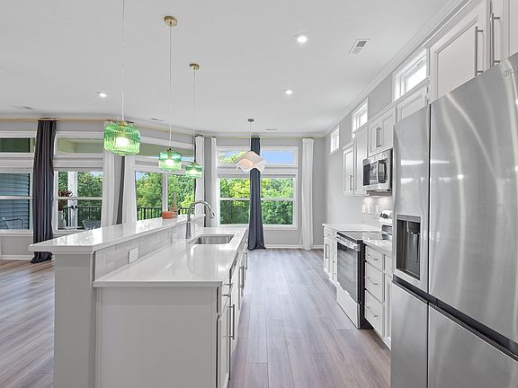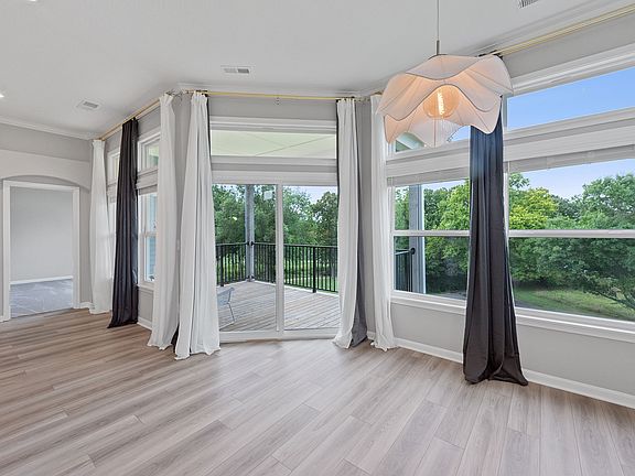 Bright open floor plan offers 10 foot ceiling , expansive island, large kitchen with high end finishes and a breakfast nook. Owner's suite offers relaxing retreat, luxurious tiled shower, double bowl vanity, large bath tub & dual walk in closets. 2nd bedroom comes with attached full bath, 3rd room offers French doors and is designed to be a large office with seating or can be used a 3rd bedroom. Large open dining room with a half bath finish the living space. Laundry room offers utility sink, brand new appliances throughout the home.