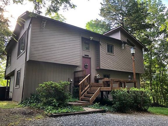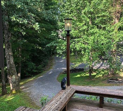 FABULOUS LOCATION ON LAKE CUMBERLAND. Located in Lily Creek Resort on a private peninsula these views are on three sides of the house. This house was designed with lots of windows to take in the views. Split foyer entry takes you up to the living room with a vaulted tongue and groove ceiling and beams with walls of windows. The kitchen is open to the living space and it too has a gorgeous dining view. The living room features a freestanding fireplace and stone surround that also provides a breakfast bar area. The master bedroom and bath are also on this level. The bedroom has vaulted ceiling and direct access to the large L-shaped deck. The lower level has two guest bedrooms and a bath. Also on this level you'll find a large laundry room with big storage. Outside is a canopy of trees for the ultimate privacy. There is large (approx. 24 X 36 detached garage that offers huge space for boat and car. You'll love the location... near to the Jamestown Resort & Marina in Lily Creek Resort