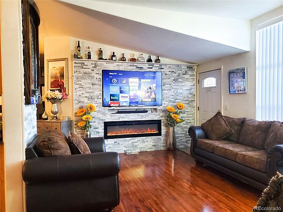 True pride of ownership in this 4 bedroom, 2 bathroom home in the Glens of Dacono. This 2003 built home offers 1404 square feet in this great floorplan with 3 bedrooms and a bathroom on one side of the home and a large Primary bedroom with a walk-in closet and private bathroom with 2 sink vanity and ample storage on the complete opposite end. The home features a great kitchen with granite countertops, stainless steel appliances, gas stove and backslash from counters to the ceiling. The living room has been updated with a beautiful stone feature wall with a built in electric fire place and TV niche. There have been countless updates in the last 3 years including a new roof, all flooring throughout, granite countertops, updated vessel sinks, backsplash, stylish feature walls, electric fireplace and complete exterior update. You will love this large lot with ample off street parking, full fenced yard, sprinkler system, firepit space with bench swings, dog run, storage shed and great fully sodded and landscaped yard. The exterior of this home has also been recently updated with custom stone work, newer roof and concrete driveways & walkways. There is an extreme high level of pride of ownership in this home. Come see it for yourself.