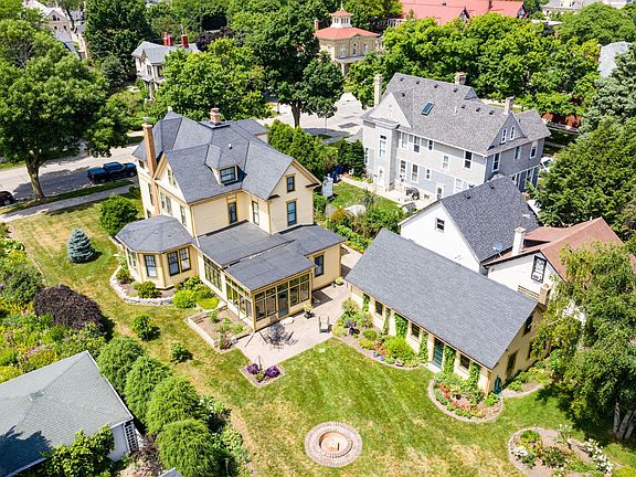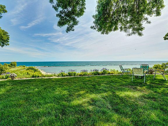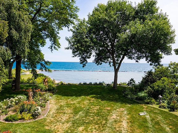 After 43 years, this stunning and spectacular Queen Anne turn of the century landmark home on the bluffs of Lake Michigan comes to market. Capture morning sunrises with unobstructed lake views. Enjoy the gardens in this lush private backyard. Set on just over .50 acres, this home has been beautifully maintained. Each turn inside this home reveals unparalleled detail and craftsmanship. First floor features include elegant crown molding, hardwood floors, 2 marble fireplaces, double leaded glass doors, DR, LR, FR, office/den, parlor with built-in bookcases, updated kitchen, pantry, 1/2 bath, plenty of storage AND a breathtaking 3 season sunroom with floor to ceiling windows. A front and back staircase lead to the upper floors where there are 5 BD & 3 BA. Deep garage with workshop and 2nd floor