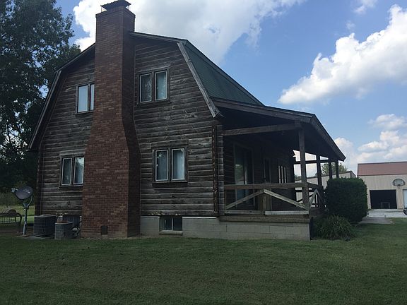 Rustic log home on 5 acres minutes from town. Beautiful new carpeting and laminate on the main level and stairs. Original hardwood upstairs. Exposed beams and logs. Woodburning fireplace w/brick hearth. Partially finished basement w/3 separate rooms...family room, rec style room, and utility room. 2 outbuildings....1) 40 x 40 pole barn with concrete floor in most and dirt floor where horse stalls used to be with a separate potential tack room and 2) 20 x 30 3 bay farm equipment shed. The 5 acres is flat and rectangular. Watch deer and turkey off your back deck. Since this is a log home, banks/lenders will require 20-30% down payment. Home needs minor TLC. Furnace is approximately 2 years old and the water heater is approximately 6 years old.