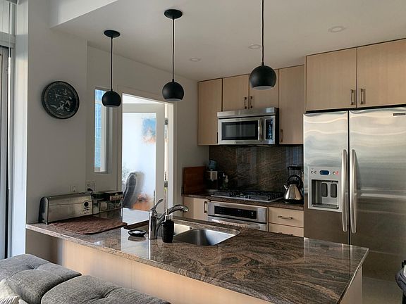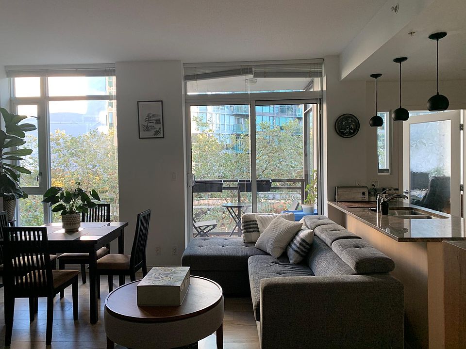 1 bedroom/1 bathroom + den+ flex Spacious Sunny apartment in the heart of Coal Harbour neighbourhood with 9 ft ceilings. Minutes away from marina on one side and Robson street on the other. Stanley park is 15-minute walk away. Giant living room and open kitchen. 1 bedroom and 1 bathroom. 1 Solarium/den (main office) and 1 flex space (second office, exercise room or utility room - you decide!), 3 closets (one by the entrance, another in the living room and one big one in the bedroom). Washer and dryer in suite. Hardwood floors, new lighting and all new faucets and shower system. Spacious balcony, so you can have a cup of coffee while overlooking the trees on Bute street. No smoking in the apartment, sorry. Parking in the building is extra $100/month and storage space $60/month. The building has concierge for security. There are also pool, hot tub, sauna and gym for your enjoyment. Up to 2 cats or 2 small dogs or 1 big dog are okay. 1 Year lease. Renter is responsible for internet and cable/phone, electricity. Owner pays heat, water, gas, condo fees. Tenant insurance is required