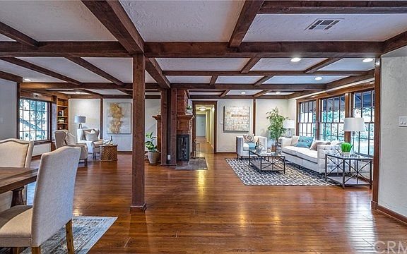 Classic Rambling Ranch in Redlands with Panoramic view on the whole valley!! Brand new remodeled double sink kitchen with walk in pantry is a must see. Six on the seven bedrooms all on the first level including the giant master bedroom with large spa like master bathroom with dual sinks and large soaking tub. Also included are four more bathrooms. This home has too many windows and double French doors to count which lets tons of natural light streaming into the home. The home has a double-sided fireplace in the living and another fireplace in the family room. Used brick walk-way lead to the front door. Quaint and charming. Lovely wood flooring, open beams, built-ins and recessed lighting. Enjoy great pool parties in the beautiful backyard pool and giant patio cover with will be a entertainers dream home. Plus, storage space everywhere in the home. THIS HOME IS A MUST SEE!!