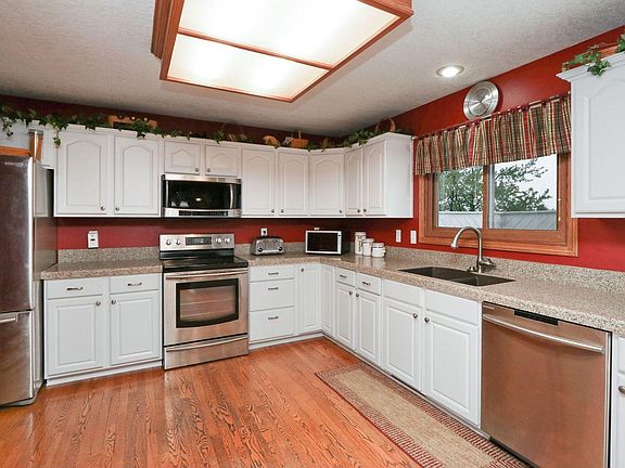 Newer white kitchen with granite and hardwood floors, opens to the Great Room. Sliders out to a LARGE deck with a very private hot tub area. Many updates including new roof in 2014, new windows in 2017 and new HVAC in 2016. All 4 Bedrooms are up including the master suite. This closet should make Mom's dreams come true. All baths are updated. Great finished space in lower level with optional uses plus a ¾ Bath. Great price here for 2800' of finish and a northside location.
