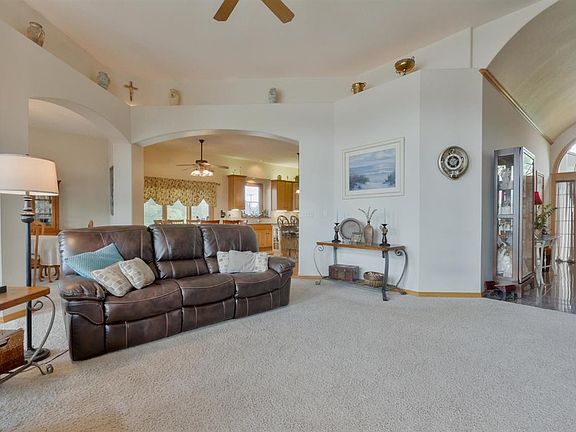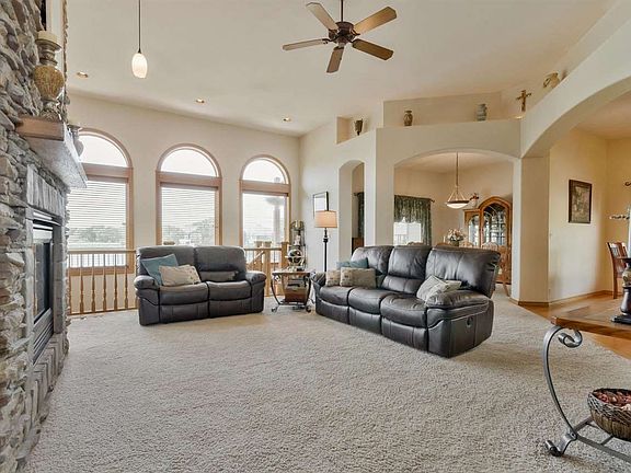 Vacation all the time!!! Panoramic views of the lake. Five bedroom ranch, very open floor plan. Great for entertaining! Granite in kitchen with island, large eat-in kitchen. Marble in entryway with barrel ceiling. Media room in lower level with surround sound, large wet bar, a true walk-out with a newly sodded yard walk down to your private dock enjoy the Paddle boat or fishing boat that stays with this home. Side load 3-car garage. Landscaping in front yard to die for! Lots of trees and a beautiful koi pond. Seller's will give a $5,000 decorating allowance.