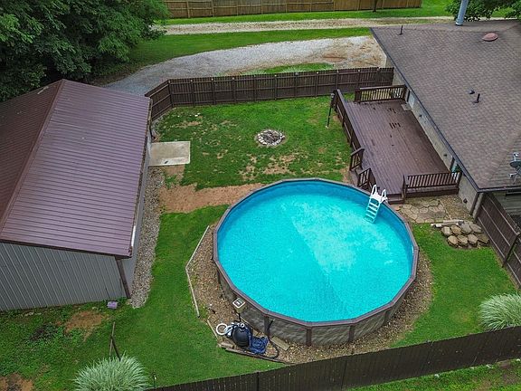 Bedford Stone sitting on .47 acres, finished walk-out basement, 2 potentially 3 bedroom, 3 full baths with 24 x 36 pole barn located on Evansvilles Westside! You will want to tour this one not just because of location and space but also because it is move-in ready & comes with immediate possession, 1 year warranty & has tons of updates. Minutes from Schools, shopping, entertainment & more. What are the updates? Per seller: Roof, gutters & Soffits 7 years (Willis Construction), pole barn roof 2024 and exterior painted, front concrete steps 2022, Champion Windows 2019-2020 approximate, HVAC 2022 (Brackett Heating & Air) ,nest thermostat as well, water hearer 2024(50 gallon), 200 amp service new lighting & outlets downstairs, wood burning fireplace cleaned in 2024 and new damper installed, large deck new in 2024 freshly painted 2025, updated primary bath, and hall bath gutted 2025, this list goes on! The spacious living room features picture window original hardwood floors recently refinished throughout the main level, kitchen features tiled flooring and breakfast nook area. Appliances are included: Stainless refrigerator, range with double oven, microwave 2024, dishwasher 2024 and ice maker. Nice wood cabinets with updated laminate counter tops, tiled backsplash, updated lighting and sink facing window over looking fenced in backyard. Main level features large primary suite with double closets private bath and access to deck (wall was taken down to enlarge primary suite in 2022). Another nice size spare bedroom and full bath are located on main level. The basement has tons to offer with tile wood flooring, baseboards and is wide open to create the ideal entertaining space. Laundry is located in basement along with full bath. There are 2 other rooms on lower level one is perfect for 3rd bedroom but does not have window egress and other is made for storage or office. The additional tile flooring matching the recreation area in basement is included (enough to complete the full bath and 2 other bedrooms), seller is also leaving the new vanity that is ready to be switched out when next buyer remodeled the lower level bath. Other amenities & updates include: entire interior painted 2025, white crisp wood work, above ground pool w/newer pump and motor, pole barn with heater and window air unit, septic pumped Dec 2024, fresh landscaping, updated exterior doors plus main level of home handicap accessible (seller did remove ramps on exterior).