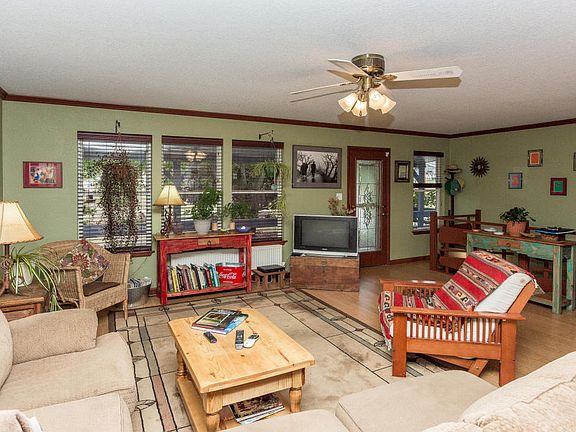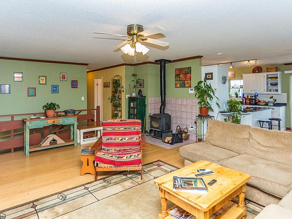 Fabulous ''Green'' home with room for everyone, chef's island kitchen has solid surface counters, tile back splash, updated lighting, white cabinets with pull outs & solid bamboo floors. Giant master suite with vessel sinks, granite counters, jetted tub, tile floors & surrounds. Lower level w/ wood burning stove that heats the entire house, theater room, family room, lg. laundry room & fantastic light bright workshop/art studio with cement floors that is 19'x20'. This is a solar home, forced hot water heat on demand that is very efficient. Sweeping views with mature landscaping, peach, plum, apricot & shade trees, the yard is fenced too! Sit on the inviting private covered front porch or elevated rear deck to take in the views. This home shows well. It has been respectfully taken care of.