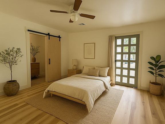 This spacious, completely renovated 4-bedroom, 2.5-bath Japanese and Scandanavian inspired home offers 1,800 sq. ft. of comfortable living space, plus an added bonus: a separate-entry studio unit that can be rented out for additional income. With two private entrances and shared laundry access, the setup functions like a duplex perfect for a homeowner looking to offset their monthly rent or accommodate extended family. The front unit is 3 bed 1.5 bath. The studio is 1 bed 1 bath.