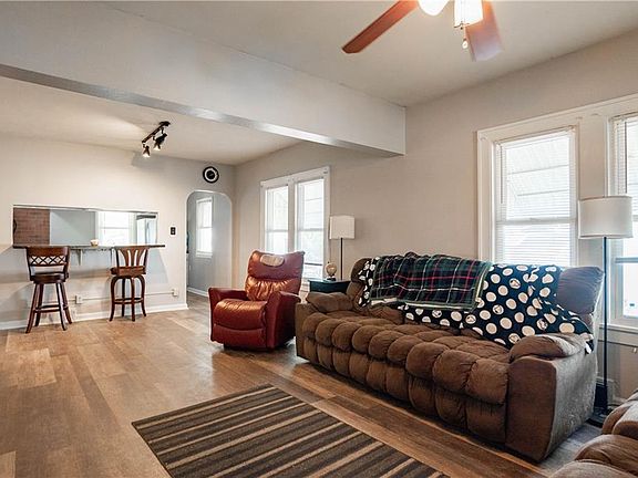 This adorable ranch off Park Ave just past Fleur is the perfect location for living the Des Moines dream! This lovely home greets you with a 3 season fully enclosed porch! Perfect for enjoying morning coffee or relaxing in the evening. The family room is spacious and well configured for couch and TV, and flows seamlessly to the kitchen, with a convenient bar connecting the two spaces. Gas stove and all appliances stay! Kitchen leads to the fully fenced in backyard with grass and plenty of room to run around. 1 car detached garage with additional parking room in front of the garage. All flooring has just been replaced with beautiful LVP, and the whole place has been freshly painted! Beautiful built-ins in one of the bedrooms, both have great closets. Basement offers great storage space and convenient laundry, washer and dryer stay!