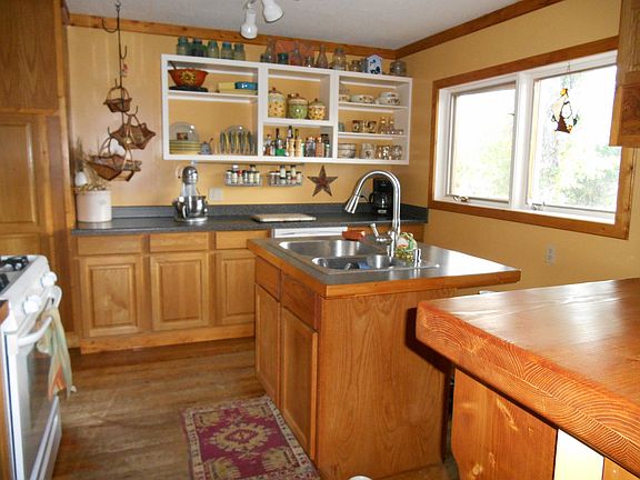 Greetings, this old house would like to share some of history since my beginning in the early 1900's. I was the first "mansion" built in Meeteetse, meaning I was the first two story frame home in town. Look at my two big windows, one in the dining room, other in the library. As you can see they are original poured windows. My pine wood floors are also still intact and not covered by carpet. There is an abundance of original wood trim throughout my rooms. I am fondly known as "Mrs. Elliott's. Mrs. Elliott was our teacher for many years, many Meeteetse residents remember attending class in my rooms. The two front doors mark the separate entrance to the school rooms and the home. I still retain a wall of original library shelves. My present owners have spent a lot of time making me shiny again. During the winter of 1999 the sewer from the house to the street was replaced. In the fall of 2000 I got a new roof. The old one was quite a deal, 5 layers of shingles, newspapers and tin from old gas cans. During the winter of 2005 a quarter inch of Styrofoam insulations was applied to my outside walls and then the steel siding. To make things even cozier for my occupants a new wood stove with triple wall chimney pipe arrived for Christmas in 2006. In 2014 a complete upstairs bath remodel was accomplished along with a complete kitchen remodel. All new appliances, cabinets, some hand made....a gas fireplace in the kitchen office, a door to the back deck(new) and new storm doors and entry door. I set on three city lots with established trees and newly planted fruit trees in the back yard. There are plenty of beautiful flowers and gardens to enjoy in the warmer months. My garage is small but totally functional. I guess I better quit rambling, I a sure my owners would like to relay some information of their own. Please call Larry if you would like to see my interior or have other questions. 307-250-0766.