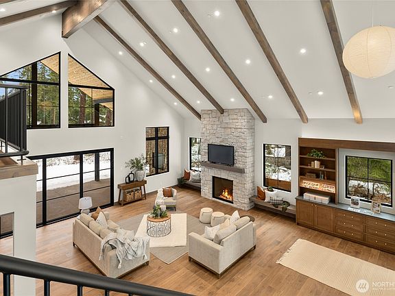 Tucked within Suncadia's coveted Pinegrass Loop, this Woodridge custom new construction features an open floor plan with floor-to-ceiling windows throughout that flood the space with natural light. By night, large fireplaces, natural stone, and warm wood Napa Valley style accents create the coziest of mountain retreats. Unique features like a library nook, built-in custom bunk room, multiple en-suite bedrooms, and wet-bar lounge make this the ultimate retreat. Lutron smart-home technology keep this home a secure, future-forward, yet timeless living space. Includes space for a wine/sauna room. This is last home designed by renowned Northwest architect, Rick Jones, meticulously interior designed craftsmanship.