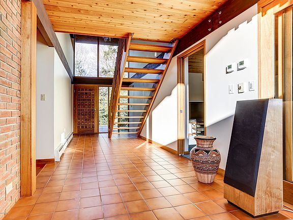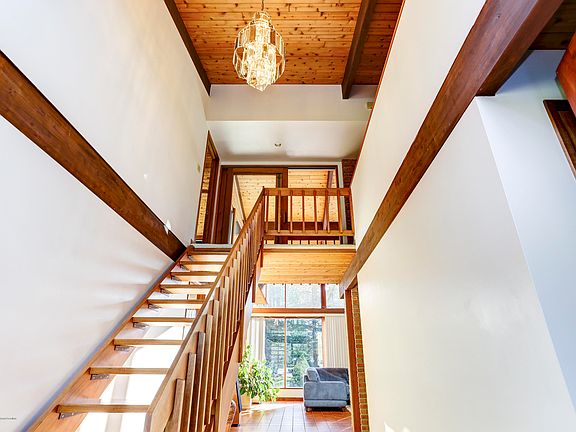 Beautiful architecturally designed, custom, contemporary home featuring 3 bedrooms, 2.5 baths, oversized 2 car garage and full basement on 1.38 acre estate grounds. A unique home featuring an open floor plan that surrounds a vaulted, south facing living room with floor to ceiling glass, radiant heat floors and warmth in the winter from an efficient wood-burning stove. This unique home showcases quality woodwork throughout including mahogany staircase, railings, windows and sliding doors.. Other interior doors are Oriental ash. Cedar ceilings span architectural beams, and Brazilian Santos Mahogany floors combined with ceramic tile enriches the first floor as does the open kitchen with Viking range and built in appliances with custom cherry cabinets. Granite island provides for seating or staging for entertaining guests. Den/office on the upper floor. Second floor balconies overlook the living room and provide expansive views of the beautiful property. Home has many upgrades including irrigation system, roof (2014), heating system (2018) and exterior house paint (2019). Home is on public water, private septic, and well water for irrigation. The property is spacious and private. This is a must see!!!