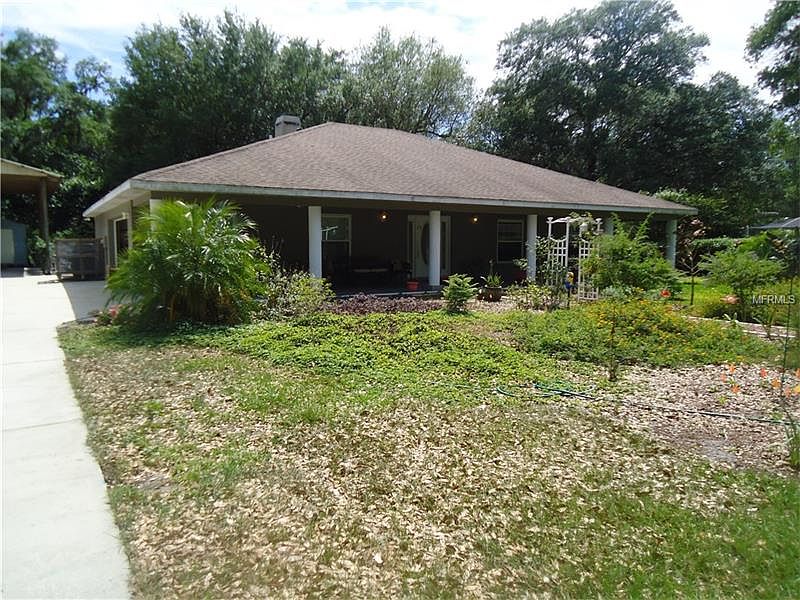 Timberidge Northside! Spacious custom home situated on over 1/2 acre. This open split plan has all tile floors, is energy efficient with double pane windows, beaded corners, Bose surround sound speakers, fireplace and eat in kitchen. Sunroom is 3rd bedroom and has no closet but access to bathroom. All upgraded appliances and faucets stay including window treatments and Hunter fans. Bedrooms over sized. The master bedroom has trey ceiling, french doors and view of tree shaded backyard. Water softener, A/C, plus storage in garage. This home is located deep into the lot for privacy. Concrete columns and tile floors on your 60x10 front porch with reinforced beam for porch swing. Covered 44x22 RV parking has water, septic and both 30 and 50 amp electricity. As you can see this home is made to enjoy and last! 1 year buyers home warranty provided by seller. Whether you have the largest RV or work on cars this home is set up perfectly. Near 5 star schools, plus I-4 to get you to Tampa and Orlando. Excellent value for the price. See it today!!