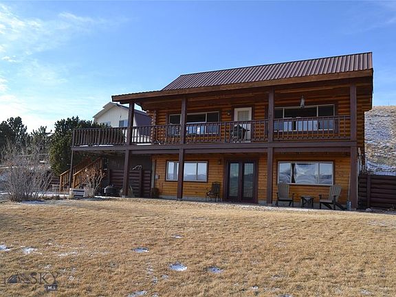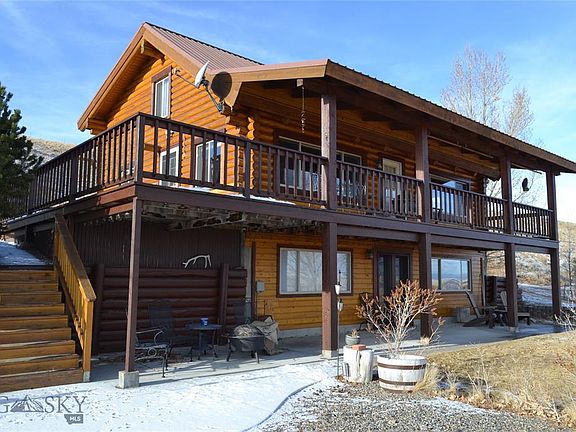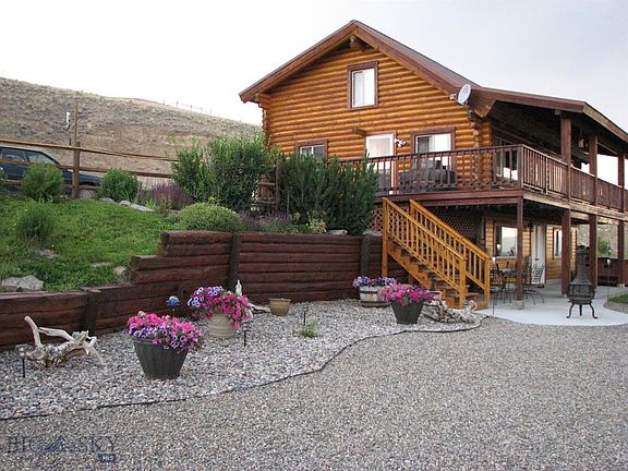 Well-built and meticulously maintained log home with spectacular views of the Ruby Valley and surrounding Highland, Tobacco Root, Gravelly and Ruby Mountain Ranges. This 2 BR/2 BA home has a daylight basement with walkout, and a loft area accessed by stairwell from the living room presently used as a third bedroom and office. The home is constructed of 8" Swedish coped logs, and has a 34'x8' covered deck, 33.5'x12' open deck and a covered concrete patio for outdoor relaxation or entertainment. Abundant landscaping is served by an underground sprinkler system and drip lines. Gardeners can indulge their green thumbs in the greenhouse and multiple gardening plots. The detached heated 54'x40' shop with two overhead 9' doors and one 8' door. Shop includes a 228 SF enclosed, finished hobby room with blue pine and corrugated metal walls. Upper shop level has 1200 SF of partially finished living space and a full bathroom with numerous possible uses including guest quarters. No Covenants.