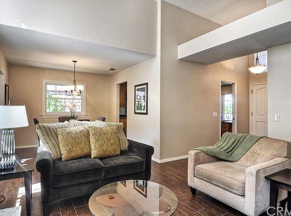 This ravishing one story home is embedded on a CDS in the popular Sierra del Oro tract. It embodies perfection, cleanliness, extra storage, and is next to Yorba Linda (exit 91 fwy at Green River Rd). An eloquent curb appeal presenting lush and colorful landscaping and new exterior paint is just a taste of whats to follow. Must-have upgrades include fully renovated baths and kitchen, top-tier dual-pane windows, trendy wood-impression tile floors thru-out all living areas and hall, almost-new heating and air, new interior paint and carpet. Lofty ceilings and a wall of windows next to the fireplace radiate light into the cozy living and dining area. And with the multi-functional office/den bordering this area, special gatherings are an easy fit. The customized kitchen is clad with made-to-order cabinetry, granite countertops with travertine backsplash, a pantry and a preparation island with pullouts, an office nook and a built-in window seat with storage. The isolated master suite is host to vaulted ceilings, closets with organizers and a fully remodeled en-suite. The inviting and easy to maintain backyard boasts a full-size patio with gorgeous flowerbeds and herb garden. Its equipped with block walls, irrigation & draining systems. Must see!