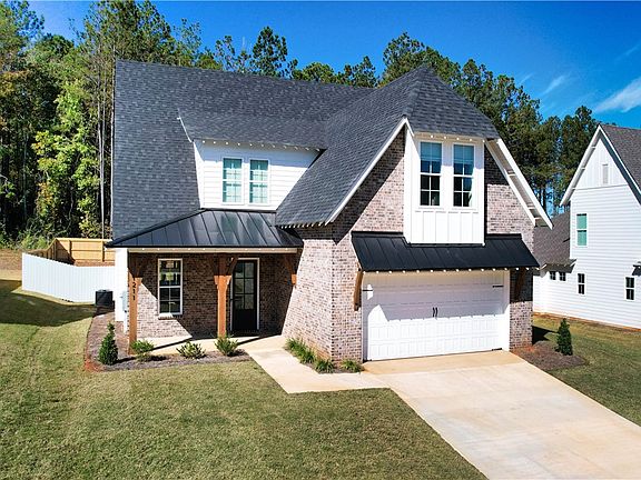Positioned less than 2 miles from Auburn University's Jordan-Hare, Owens Crossing is built by Holland Homes LLC. The Jackson is a 5 bedroom, 3.5 bathroom home. The exterior features architectural details such as metal roof accents, cedar accents, and exposed rafter tails. The living room features a fireplace with brick surround. The kitchen has a large island, tile backsplash and stainless-steel appliances. The open concept floor plan is completed with a large living room, dining room, and library nook. The master retreat includes two large walk in closets, tile shower, freestanding tub and dual vanities. Four additional bedrooms, 2 full baths, and an open loft area can be found on the upper level. This floor plan features covered porches on the front and rear of the home.