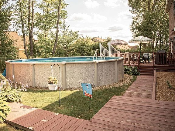 Charming Brick home located on a cul de sac. Home has two lots containing 0.54 Acres. Nice oak eat in kitchen with open floor plan to living room with brick fireplace and sliders to back pool area. Dining room/family room combination also has sliders to deck and pool area. 4 bedrooms,. 2.5 baths and den. Finished family room in basement, large storage area in basement, 2 car attached garage. A beautiful back yard for your family's enjoyment. Very nice gazebo, above ground pool and large deck. 2 car attached garage, nicely landscaped lot, and shed. A must see. So much to say about this well maintained home. This home also features a new roof, new windows, and new doors.