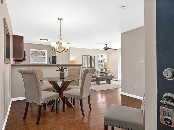 Active Under Contract--Continue to Show-This main level condo [NO STAIRS!] is nestled in the Bella Vista complex in the heart of St. Peters. Freshly painted interior, newer lighting fixtures , this split bedroom, two bed, two full bath condo, includes engineered wood flooring in the main living area, walk in closet in the primary bedroom suite, white six panel doors, breakfast bar, a dining area, and a patio off the family room. Centrally located with access to Hwy 94 or 364, Hwy 70,Hwy 40/61 or 370 and near walking trails/parks and shopping! Water, trash, exterior maintenance , snow removal, grounds maintenance and sewer covered in monthly fee. A HWA Platinum home protection plan is in place! Washer dryer combo and fridge in kitchen included and sold "As IS" This neutral, turn key condo is an amazing opportunity! Location: End Unit, Ground Level
