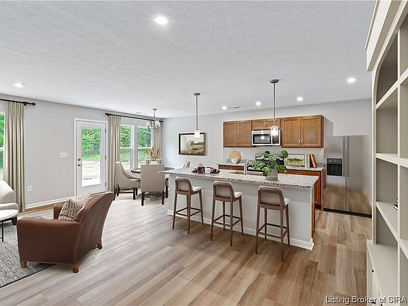 Trendy new Preston Modern Farmhouse plan by Fischer Homes in beautiful Champions Run featuring one floor living at its finest. Open concept with an island kitchen with stainless steel appliances, oak cabinetry with soft close hinges, gleaming granite counters, walk-in pantry and walk-out morning room all open to the huge family room perfect for entertaining. Private study with french doors. Homeowners retreat with an en suite that includes a double bowl vanity, walk-in shower, linen closet and walk-in closet. Expanded 2 bay garage.