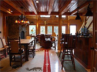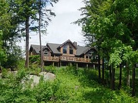 From a ridge top overlooking Tupper Lake sits this Adirondack lake home offers both lake and mountain views. Enjoy your morning coffee or tea from the deck overlooking Tupper Lake then take a short walk down the path to the water. Dip your feet in the water of the sandy beach or take a swim off the dock. Camp out in a real Adirondack lean-to at the water's edge, make s'mores over a giant fire pit, cook hotdogs on the waterside grill, and listen for loon calls. On cold winter mornings, stay in the sunroom and plan your cross country ski trip or ice fishing for the day. If it's rainy, snuggle into the movie room with your favorite flick. Built with many amenities, the home would be perfect as a year-round vacation retreat or a home for people looking for a quieter way of life in the mountains. Fishermen, hunters, hikers, and backpackers-this is an ideal haven for people who love the outdoors. The home is situated within minutes of Adirondack High Peaks hiking trails, rivers, and several lakes for canoeing and kayaking, plus numerous cross country ski and running trails. This unique Adirondack property is enjoyable throughout all seasons with wooded grounds featuring a mix of maples and hemlocks-particularly beautiful when fall foliage appears. The home features the following rooms and amenities. Entry/mudroom: Large entry with plenty of cabinets for storage and coats. Kitchen: Eat-in kitchen with sandwich bar, commercial-grade stove/oven, granite counter tops and bar tops and custom built hickory cabinets, custom cherry ceiling. Custom lighting throughout kitchen and under-the-counter cabinets. Great Room: Spacious Great Room with large picture windows overlooking trees and the lake with French doors leading to an expansive deck; custom built fireplace; tree extending up through center of the fireplace. Custom-designed sound system and large, flat-screen TV. Vaulted ceilings, very intricate. Huge, rustic wood beams and posts support all corners and archways; custom cherry trim. Large wooden stairway and balcony provide access to four upstairs bedrooms. Dining Room: Spacious, open design, adjoining kitchen and Great Room. Old fashioned pine plank flooring. First Floor Master Bedroom: Located on the southwest side of the house. French doors open out onto deck with gorgeous mountain views from all windows. Lots of cherry, pine and Tamarac custom woodwork. Attached master bath features large tile flooring and large whirlpool tub next to a picture window - private with long-range views. Custom wood and granite countertops. First Floor Office: Located on the north and east sides of the 1st floor. Fully equipped and features all custom woodworking in the Adirondack tradition. Sunroom: Accessed from the office and the great room, the sunroom is located in the southeast corner for the house. With full 270 degree glass windows all around and incredible scenic views, this is the perfect spot for morning coffee or to enjoy sunsets over the lake. Laundry room: First floor room keeps laundry closed off from main living area. Upstairs Bedrooms: Four bedrooms - two of the four bedrooms upstairs feature vaulted ceilings; all provide ample closet space. Upstairs Bonus Room: Upstairs private reading room or office with private outside deck overlooking the lake and mountains. This could also be used for additional bedroom or guest room. Basement: * Game Room: The Game Room is accessible from upstairs or through patio doors leading into the house through the walkout basement. Closets and large storage/coat closets are located on each side of the room. * Custom Movie Theater: The theater features leather, reclining chairs and a large flat-screen TV mounted into the wall with custom stereo and surround sound...complete with popcorn machine for movie nights. * Guest Bedroom/Guest Bathroom: The guest bedroom and bathroom are accessible from the Game Room and is perfect for overnight guests. * Full work-out gym. * Kids play room. * 2 garages.