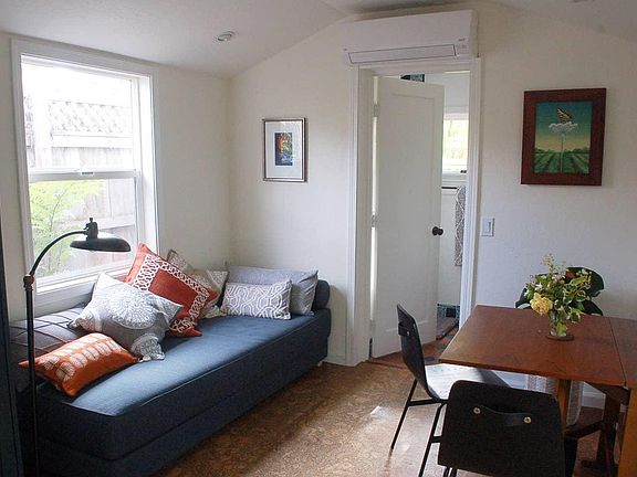 Beautiful, private, detached cottage in garden setting on a quiet street. Fully-furnished one- bedroom with lots of natural light. Very peaceful. Artfully designed with eco-friendly materials, including bamboo and cork floors, custom solid wood cabinetry, and quartz countertops. Kitchen has high-end appliances, including Bertazzoni range and Bosch dishwasher. Private entrance and separate garden/patio for your enjoyment. Ideal Westbrae location, with dining, grocery and other shopping--just minutes away. Great commute options 15 minute walk to BART and minutes from AC Transit, Transbay bus and freeway. Rent includes utilities, internet and wifi.