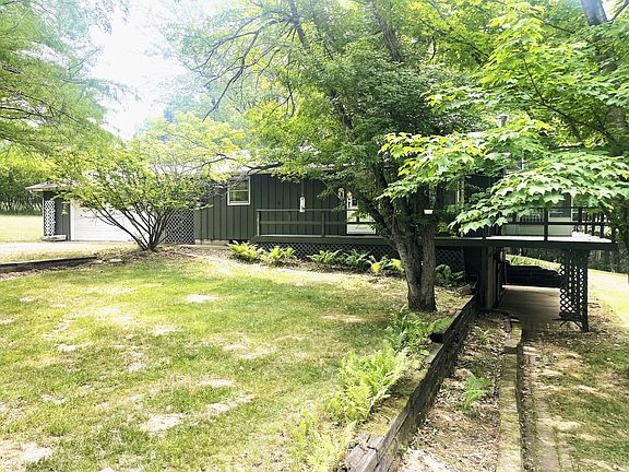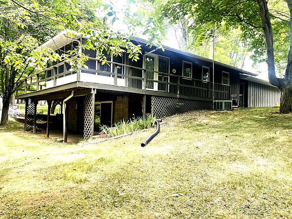 Experience relaxing lake life with this affordable ranch home on 2 wooded lots in Lake Wildwood, situated within walking distance of the community pool and lake. The main level of this lake home features kitchen with island, open floor plan with cathedral ceilings, 2 bedrooms, 1 bath, and French doors to wrap around deck. The finished lower level includes kitchen, family room with wood burning stove, office, and sliding doors to patio. There is a large 2 car attached garage, a detached 1 car garage (good for boat storage) and an additional garden shed. The roof of the house is approximately 3 years. Property is subject to Lake Wildwood rules, covenants and by laws, including the first right of refusal. Entry pass is required to view property. Pin#'s 06-07-352-002 and 06-07-352-001