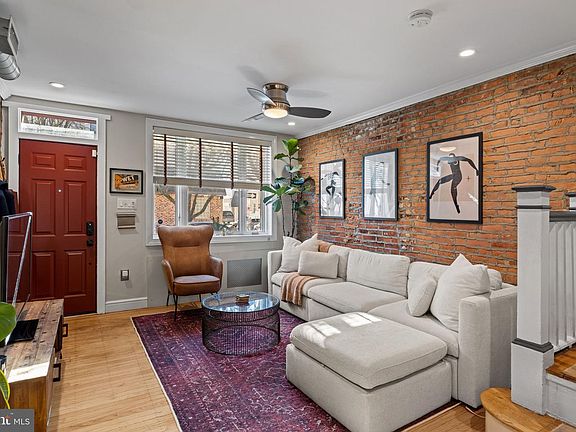 Freestanding fireplaceOriginal character and charmQuartz countertopsUnique loft-like rowhomePrivate outdoor retreatModern updatesOriginal floors