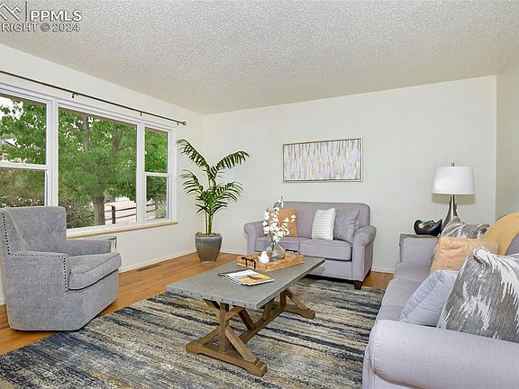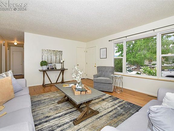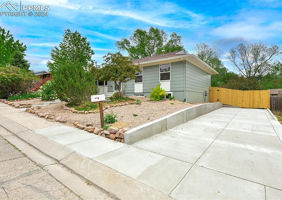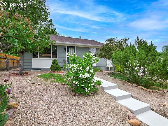 This home is much bigger than it looks on the outside and the room sizes are large, check out the square footage. There is a new concrete driveway for off street parking big enough to hold 3 cars tandem or an RV with room to spare. This is a ranch style home that has been nicely updated throughout with 3 bedrooms and 2 baths on the main level plus a full basement that is sunny and bright with 2 big garden level windows. There is an easy option for a 4th bedroom, room for closet space, and a rough-in for a 3rd full bathroom downstairs. The basement also offers loads of storage space in the large laundry area. From the front window there are views of mountains and you can see Pikes Peak. There are gorgeous oak hardwood floors in excellent condition that are original to the home, in the living room, hallway and bedrooms. The large country kitchen offers plenty of dining space and walks out to a wood deck and private back yard with mature trees, blooming gardens and a paver patio. All appliances are included and the fridge, dishwasher, and central AC unit were installed in 2022. The washer and dryer and extra fridge downstairs are from 2023, and there is a brand new kitchen stove in 2024. New paint inside and out, new main level hallway bathroom, new carpet downstairs, and a brand new roof was just installed that is not shown in the photos. The front yard is nicely xeri scaped with garden areas. Move-in ready and in a great location, close to schools, shopping, restaurants, Old Colorado City and Garden of the Gods. A rare find on the west side at this price.