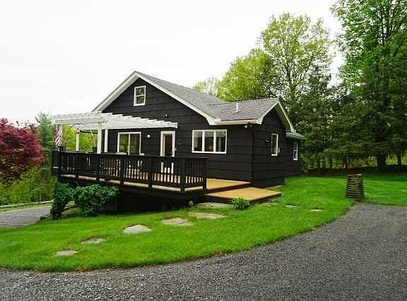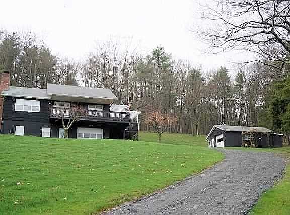 Set back off quiet country road this 3 bedroom, 3 bath Contemporary home displays a perfect pride of ownership. Bright and modern with open concept, oak floors though out main level, brick wood burning fireplace in Living room and windows that expose distant views of Taconic range, sliders from Dining Room to gorgeous wrap around deck with pergola. sleek and updated kitchen with granite and custom cabinetry. Master on first floor with full tile bath, second Bedroom upstairs with tile 1/2 bath and Bedroom 3 on lower level with additional full tile bath. There is a one car garage plus an additional one car detached garage with electric. Bucolic 8 private acres with pond site. Perfect home for those who seek solitude without seclusion! Minutes to TSP, 2 hours NYC.