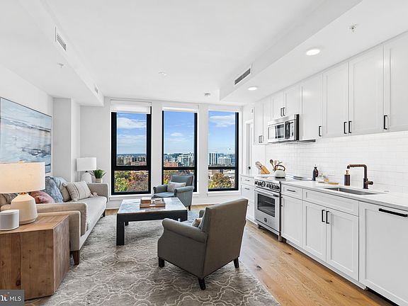 This most desirable unit in the Avidian will blow your mind. Just look at the pictures: Ten Stories above The Nation's Capitol you will have unobstructed views for a lifetime. No new construction will block your views of the most iconic sights in Washington DC: The Washington Monument, the Capitol, the Potomac River and the National Cathedral. This 2 bed/bath home is bright and flooded with light. You have a proper entry hallway that leads into the open concept kitchen/dining/living space. New appliances including the Bertazzoni range, Blomberg fridge, and panelled Bosch dishwasher accent the quartz counters, beautiful cabinets and backsplash. Round the kitchen to the master bedroom and your own personal balcony/outdoor space. You won't get crowded with the ensuite bathroom kitted with double vanities and aesthetic finishes. The views and light will cure any winter blues in this bedroom. Completing your new home is a 2nd bedroom with a large closet. The full bathroom serves as a guest bathroom as well as easy access to the 2nd bedroom. Important details and amenities: PET FRIENDLY with an indoor dog run and a pet washing room; 24/7 Concierge and Security; Penthouse Lounge with fully equipped kitchen; Rooftop Pool and Sun Deck; Grilling Stations with bar and prep areas; Lounge and Seating niches featuring luxurious sectionals and fire pits overlooking compelling city views. Secure, underground garage parking and storage available to buy separately. The Avidian is half-a-block away from the Navy Yard Metro and walking distance to everything.