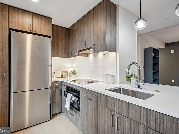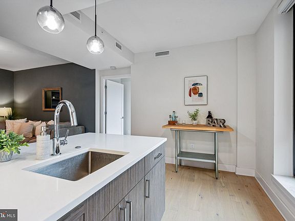 Welcome home to the Avidian in the heart of Navy Yard! This rare and gorgeous condo is the largest 2 bed / 1 bath model available, with fewer than five of these units in this desirable building! Featuring a huge and open floorplan with sleek wood floors, high ceilings, and an abundance of natural light, this ultramodern condo is a picture of urban elegance. Inside the kitchen you’ll find contemporary cabinetry and fixtures, quartz countertops, a stylish tile backsplash, and peninsula breakfast bar with pendant lighting. Both bedrooms boast plenty of closet space, floor-to-ceiling windows, and ceiling fans. The sizable full bathroom includes a wide double sink vanity and a tasteful tile surround, with access from both the primary bedroom and the living room. This popular building in one of DC’s most vibrant neighborhoods offers a vast array of amenities including a 24/7 concierge, security, a fitness center, areas for grilling and sitting by the fire pits, a party room, billiards and game room, indoor pet-run and pet washing stations, and a rooftop pool with unbelievable views of the city. Just minutes to Harris Teeter, Whole Foods, Shake Shack, Salt Line, Mission, Walter’s Sports Bar, The Wharf, Nationals Park, Audi Field, Fort McNair, Joint Base Anacostia-Bolling, and Reagan National Airport. Only one block to the Navy Yard-Ballpark Metro Station, with quick access to South Capitol Street, M Street, K Street, I-395, I-295, and I-695. Fewer than five units in the building have this large floorplan, with nearly 1000 square feet of space! This gorgeous condo in this amazing location won’t be available for long. Schedule a private tour of your stunning new home today and live your best city life!