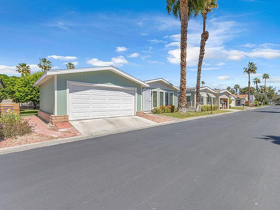 Nestled within the serene 55+ gated community of Desert Sands in Cathedral City, this charming 2-bedroom, 2-bathroom manufactured home offers 1,512 square feet of comfortable living space. The property features an inviting covered patio and an attached 2-car garage, complemented by mature fruit trees that enhance the outdoor ambiance. Updates include a tankless water heater, modern furnace, upgraded flooring, new toilets, energy-efficient windows, updated plumbing, and reinforced jack supports in 2025 with 5 year warranty, ensuring a move-in-ready experience. The spacious laundry room adds to the home's practicality. Furnishings are negotiable, offering flexibility to suit your preferences. Residents of Desert Sands enjoy access to a wealth of amenities, including a remodeled clubhouse with a large ballroom, community kitchen, fitness center, billiards room, and dedicated card area. Outdoor facilities feature a sparkling pool, relaxing spa, tennis court, and picturesque lakes and fountains throughout the property. On-site RV storage is also available