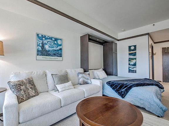 The studio comfortably sleeps 4–6 guests and is being sold fully furnished, including all décor—making it truly move-in or rent-ready from day one. Owners and guests enjoy the convenience of heated underground parking, ski lockers, bike storage, and relaxing in the outdoor hot tubs & fire pit.