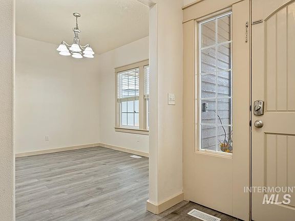 Cute as a button home in desirable North Meridian! Expansive single level home with upgrades galore including granite countertops, wood flooring throughout, stainless steel appliances and newly installed trim and paint. The 9' ceilings and cozy gas fireplace make the living room the perfect place for relaxing. The master retreat features a soaker tub and separate shower with a large walk in closet. The home has the perfect sized newly remodeled backyard oasis! The community features a pool, parks and walking paths. Close to shopping, schools, and all that Meridian has to offer!