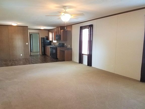 **Amazing current move-in specials **Home also available for purchase Do you love the idea of living in a stylish, modern home? Then you can't wait to view this one! Crisp white walls are warmed by chocolate and whiskey trim, cabinetry, and fixtures. Sharp black appliances seamlessly blend. Neutral carpet and multi-colored earth tones in the vinyl polish the look, while brand new blinds throughout and rich window dressings in the living room round out the style. The living spaces are open and spacious with great natural light. A ceiling fan in the living room will help keep the breeze flowing if it's an open window kind of day. When temperatures wise, the central AC will keep everyone nice and cool. The L-shaped kitchen allows space for a dining table. The 2017 stove, fridge, dishwasher, and mounted microwave leave nothing to be desired in this beautiful and functional kitchen. Off of this space opens the laundry room, with washer and dryer hook-ups (both gas and electric for the dryer). This could also double as a mud room, storage, or a place to hang those bulky seasonal items. The master bed comes with a walk-in closet and its own bathroom. On the other end of the home, the guest bed also comes with a generous closet. The guest bath offers both under-the-sink storage as well as a medicine cabinet with additional open storage. The home is nestled in a cul-de-sac within the community. Two parking lot spaces are reserved for this home, so no long treks carrying in the groceries from the car. From the clean, contemporary style to the amazing storage to the fantastic practical functionality, this home has everything you need. Contact us today to schedule a showing and start the process to moving into your next home! Royal Highlander MHC has been under new ownership and management since September 2016. With great access to the city, on a CityLink bus route, and being served by a great school system, you will love the independence and convenience of living in our community. Come see the new Royal Highlander! Contact us today to schedule your showing, and ask about our current specials and purchase options! Two year lease. Trash included in rent. Ask about our pet policy.