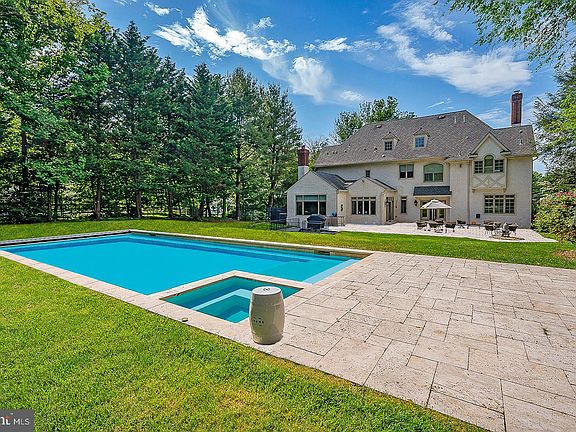 Nestled on an over half-acre set back from the road, this elegant home boasts five bedrooms and four full bathrooms, beautifully combining ample space with refined style. The entry through gates adorned with stone pillars leads to a parking space, driveway and a three-car attached garage. Inside, the central hall ushers you into the elegant living room, complete with a stately fireplace and picturesque views of the well-manicured front yard. A separate study with glass doors provides a quiet retreat, while the formal dining room is poised for hosting splendid dinners. The heart of the home, the kitchen, features a functional island, granite countertops, and a six-burner stove. It opens to a family room with cathedral ceilings, a cozy fireplace, and an oversized window framing the backyard. This open layout ensures that both cooking and socializing can be effortlessly enjoyed. The breakfast area, with its expansive windows, offers peaceful garden views and access to the back porch—perfect for peaceful morning coffee. Upstairs, the primary suite commands attention with its hardwood floors, walk-in closets, and an additional fireplace, creating a luxurious retreat. This suite includes a lavish bathroom with double sinks, a separate shower, and a soaking tub. Four additional bedrooms, 3 of which come with their own bathrooms, ample closet space, and wall-to-wall carpeting. A convenient laundry room completes this floor. Outside, the property features a below-ground pool, a spacious backyard, and a patio, all enclosed by a fence for privacy and security. This outdoor space is ideal for both serene solitude and vibrant entertainment. Situated on the esteemed Main Line, the home offers both charm and convenience, with proximity to the Village of Gladwyne, great schools, major corporate centers, and straightforward access to the city and airport.