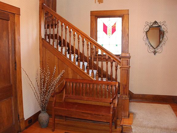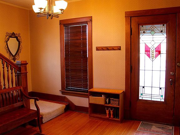 This Classic 2-story is located about 2 blocks of Grinnell College and Downtown Grinnell! Step into the formal oak foyer with open staircase. Through the french doors into the front parlor and into the large open living room. Formal dining room with great storage. The kitchen has newer appliances and an abundance of cabinet storage. Cedar lined 3/4 bath. Upstairs to a large master bedroom that can open up into a 2nd bedroom/office with walk-in closet. Large full bathroom. Two more bedrooms with great natural light. Large, open unfinished walkup attic for endless storage or finish it for your use. preserved original hardwood floors and trim throughout most of the house. New roof and exterior paint in 2011. Fully fenced in back yard with swing-set, 16X10 storage building, elaborately landscaped patio and raised bed vegetable garden. Great location! Great Price! Make your appointment today!