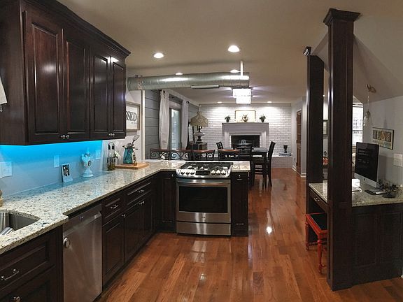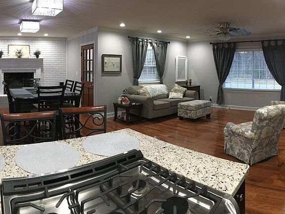 1211 Yacht Basin Dr Colonial Heights, VA 23834 4 beds 2.5 baths 1,914 sqft Lovely 4 Bedroom, 2.5 Bath Home with 2 Car Garage/Workshop on 1/3 acre lot in Colonial Heights Tussing Elementary school district. Open floor plan with all new beautiful solid oak hardwood floors continuously flowing thru the downstairs. A gorgeous kitchen with custom built raised panel maple cabinets, all new LG appliances including gas range, ultra quiet dishwasher and side by side refrigerator. Kitchen has color changing LED countertop lights over 20 linear feet of granite countertops and breakfast bar plus a separate pantry with custom cabinets and another 6 feet of granite tops to match kitchen and also includes those same beautiful wood floors. The large dining room has a log burning, brick fireplace and opens to a lovely screened porch overlooking the yard. Living room has LED recessed fixtures and beautiful ceiling fan and built in surround sound to meet all your home entertainment needs. Recently painted throughout the house. Upstairs consist of 3 bedrooms plus a large master bedroom with a private bath. One of the spare bedrooms has a built in library/ relaxation room with LED up lighting. It’s a great area for the kids to hang out and read or just relax. The roof was replaced in 2018 and flip down gutter installed in 2019 for easy cleaning. No more climbing on the roof or even needing a ladder to clean these easy clean gutters. Now you can clean out your gutters on the whole house in less than 10 mins. Plenty of storage in the over sized two car garage. New custom shaker style cabinets in the laundry/mud room with TONS of extra storage. You will appreciate this well built and well cared for home with a convenient location to I-95, shopping and Fort Lee. So much room and versatility! Well loved and well maintained in a super convenient location. Lovely undeveloped wooded area across the street owned by the city of Colonial Heights. Within walking distance to public library, soccer fields, Mt Pleasant Church and High School.
