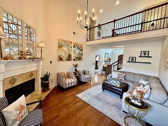 5 spacious Br, 4.5 Ba plus large bonus room. Granite counters, stainless steel appliances and double oven. Guest room w/ private BA. 2-story living room w/ wrought iron railing overlooking great room. Beautiful wood flooring downstairs. Owner's suite w/ double sinks, whirlpool tub, large shower. Covered patio w/ built in grill. High-end stone fence, 3-car garage. New roof, water heaters, and fridge!