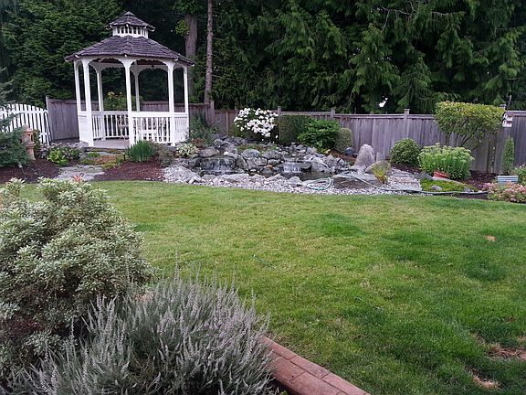 This home has been totally remodeled and has a new coat of paint. Counter tops are quartz in kitchen, bathrooms, and office, there are custom stone and glass back splashes, floor to ceiling custom slate fireplace with gas insert with blower, pocket doors, high end stainless appliances, two granite composite sinks in kitchen area, double oven, Travertine floors and shower surrounds in two bathrooms, large jetted tub with travertine surround, six panel doors with nickel hardware, updated trim and base boards, lots of storage, in ceiling speakers and outdoor speakers, a heat pump, heated garage with attic storage and cabinets, RV parking, an alarm system, irrigation system, fenced yard, heated and lighted green house, pond with three waterfalls, large outdoor patio, part of patio is covered, fire pit area, corner lot in a cul-de-sac, professional basketball hoop, and the local school is Bay View Elementary in the Burlington-Edison School District. It is move in ready!