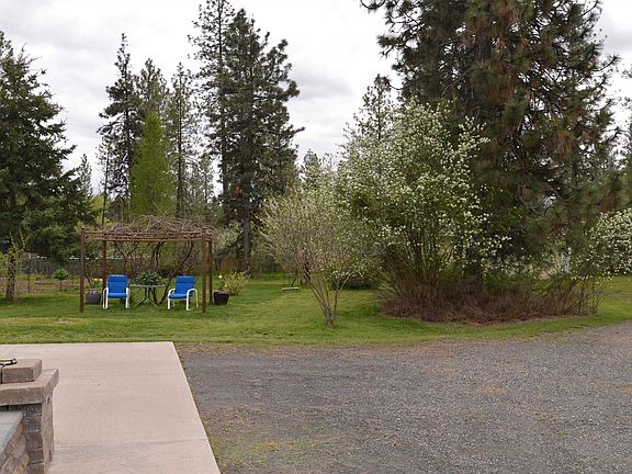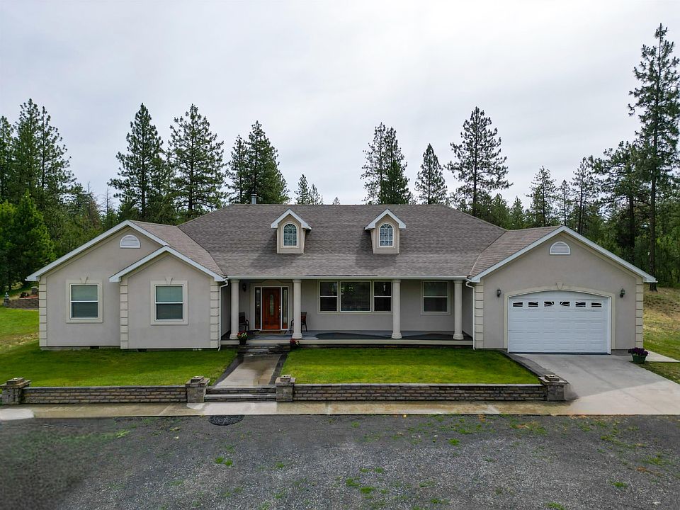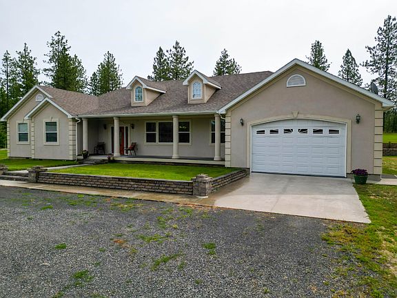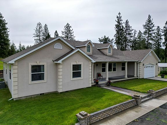 Welcome to your dream custom home on 12.43 acres only 10 minutes from NW Spokane. The house was build in 2007, this 3352 sq ft 1-level home offers 5 bedroom 3 baths. The 5th bedroom is massive and easily could convert to a mother-in-law Enjoy 15ft soaring ceilings in the massive living room with beautiful views. Central A/C. An expansive kitchen awaits with maple soft close cabinets, crown molding, granite, eat-in kitchen with oversized enormous formal dining room. SS appliances. Unwind in the spacious owner's suite, complete with a dreamy bathroom w/tile floors, large jetted tub, & a tile walk-in shower. Embrace outdoor gatherings on the expansive deck leading to a fancy fire pit area. Check out the insulated 24 x 60 shop, w/a wood-heated custom cedar sauna & separate large office. The breathtaking landscaping and vast backyard with 2 gardens, If you need working from home you can use about 6 acres for business.15 GPM well. New Water pump. The property can be subdivided in the future. NEW Trex on the deck.