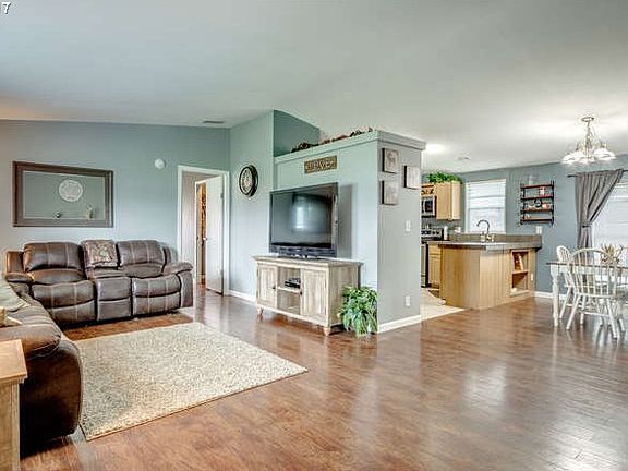 Updated 2002 manufactured home, new floors, paint, countertops, etc with 30X40 shop, and 2 stall barn, tack room, hay storage, with fenced pasture. ~1acre of property, 1/2 is pasture, 1/2 is house/shop/garage. **Photos are from 2017 listing.** Biggest change is wheelchair ramp to front door, stairs are gone. New furnace 2017, new hot water tank 2019. Home currently rented, can sell as rental or no.