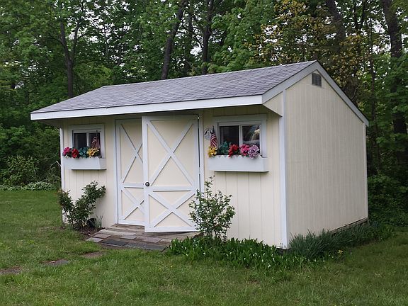 Charming Cape Cod home with first floor bedroom and bath and many recent updates. Two upper level bedrooms with dormers. Partially finished lower level with wood stove and brick hearth. Large shed/shop in rear with windows and electric. Level lot with almost 1 and 1/2 acres, beautiful rear yard.