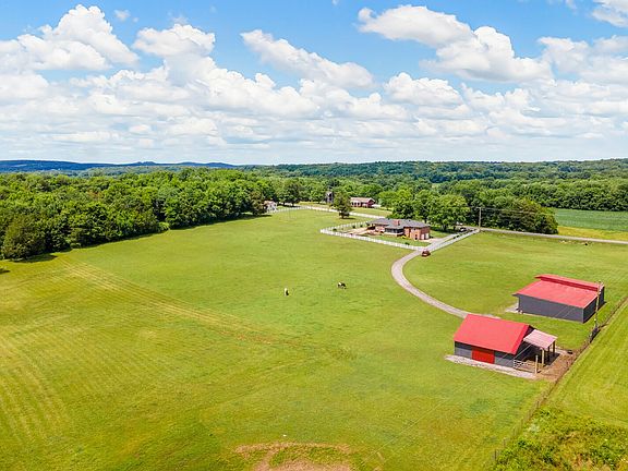 Beautiful, Spacious all brick home on established 12.7 acre one-owner farm for your horses or livestock! Lots of room with 3 full bedrooms and 2 full baths upstairs as well as in-law quarters/teenager suite downstairs - perfect for multi-generational living. 2 car garage and a large brick covered carport on a concrete driveway! Beautiful fencing along the 552' of road frontage. The livestock area is complete with stables, tack room, wash stall, and hay loft, making it the perfect choice for equestrian enthusiasts. Plus, with a hot tub, screened-in patio, and breathtaking views, this property is truly an oasis. If you're looking for a place to call home that offers both luxury and practicality, Welcome Home. There is another septic tank w/ separate utilities options on the property.