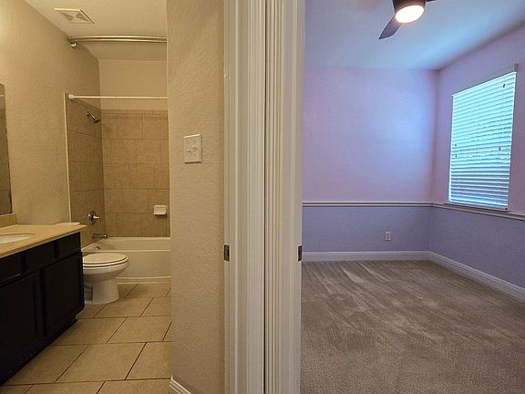Welcome to this beautifully designed 4 bedroom, 3 bath home offering 2,450 sq ft of spacious living with an open floor plan. The main living area features a cozy gas fireplace and flows seamlessly into the island kitchen, complete with solid countertops, custom cabinetry, and stainless steel appliances-perfect for entertaining. The downstairs primary suite offers a peaceful retreat with a walk-in closet, garden tub, separate shower, and double vanities. Upstairs you'll find a large game room, additional bedroom, and a dedicated office or study space. Step outside to a generous backyard with a covered patio and sprinkler system-ideal for relaxing or weekend gatherings. Located in a vibrant community with fantastic HOA amenities including a playground, tennis and basketball courts, and a sparkling swimming pool. This home truly has it all! Online application link is on our website, $75 non-refundable application charge for all applicants 18+ due at the time applying. Animal administration charges monthly, per animal starting at $15 (charge based on PetScreening's FIDO Score), subject to restrictions & approval. Lease Administration Charge of $100 at lease execution. Mandatory Resident Benefit Package $50.95/month.