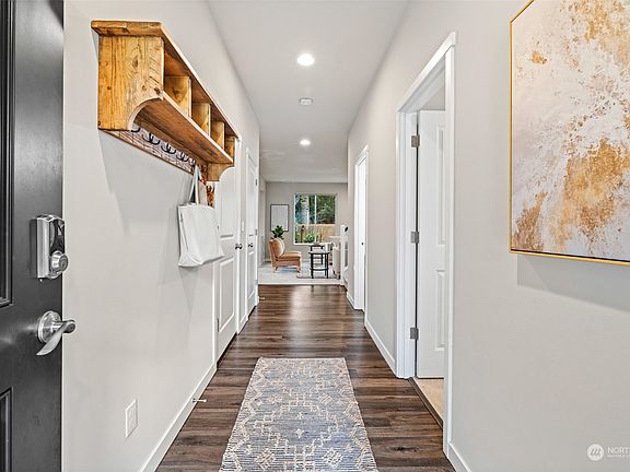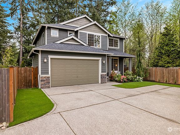 Modern East-facing home nestled on a cul-de-sac! This impressive 5-bed, 3-bath gem spans 2312 sq ft on a 5312 sq ft lot, featuring a convenient main floor bedroom & 3/4 bath. Fully fenced w/ low-maintenance artificial turf for easy care. The kitchen shines w/ stainless steel appliances and quartz countertops. Enjoy scenic views backing onto a nature preserve. Enhance outdoor living w/ a charming gazebo & playground amenities in the backyard. The primary suite boasts an adjoining 5-piece en suite bath & custom-built closet. The loft provides ideal space for entertainment or play. Convenient I-5 access & nearby park & rides simplify commuting. Don't miss this exceptional opportunity to own a stylish & functional home in a desirable location!
